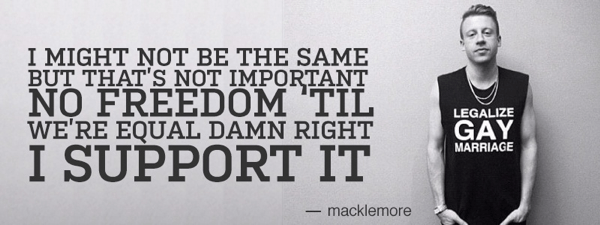 當歌曲《Same Love》在最高法院就兩項同性婚姻立法後,此歌隨後進升到音樂風雲榜頭100位,更被形容為「同志國歌」。以下是Macklemore總結此歌的第一段。