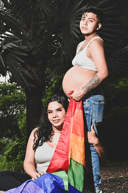 Pregnant trans man Fernando Machado and his transgender wife, Diane Rodríguez.