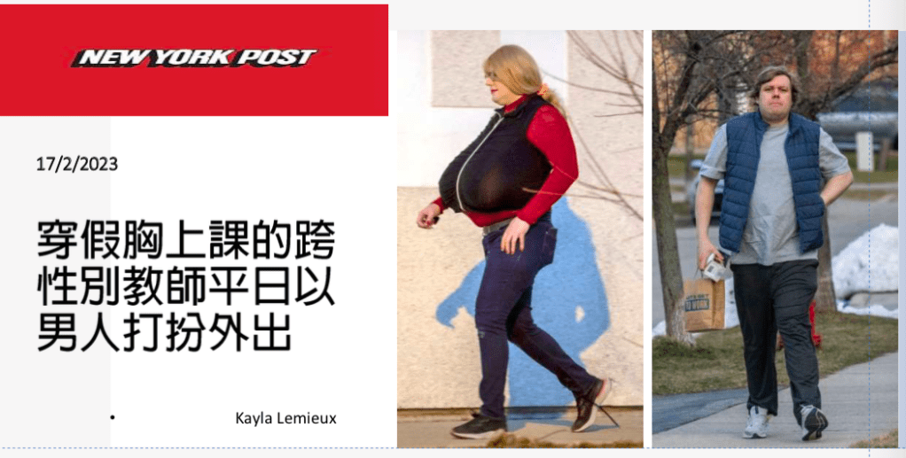 穿假胸上課的跨性別教師 Kayla Lenieux 平日以男人打扮外出